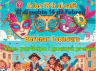 Concurs de Carnaval Dissabte 14, a les 19 h, al cafè Berenar i concurs amb premis Després: sopar de cabasset i música amb el DJ Carlos Disfressa’t i vine a gaudir d’una tarda plena de festa i diversió! Participa al concurs! Et pots apuntar sol/a, en parella o en grup (comparsa). Les comparses que ...