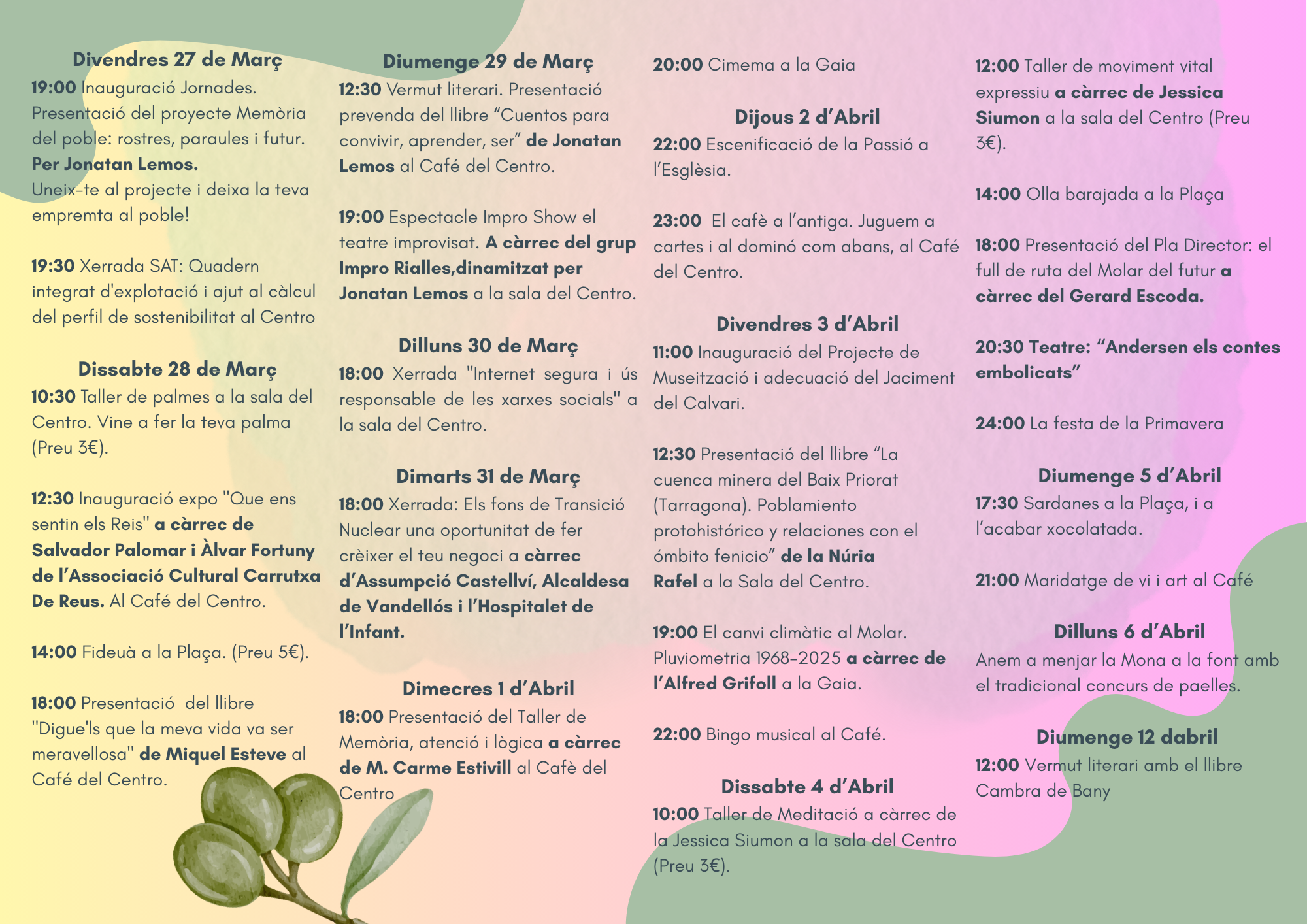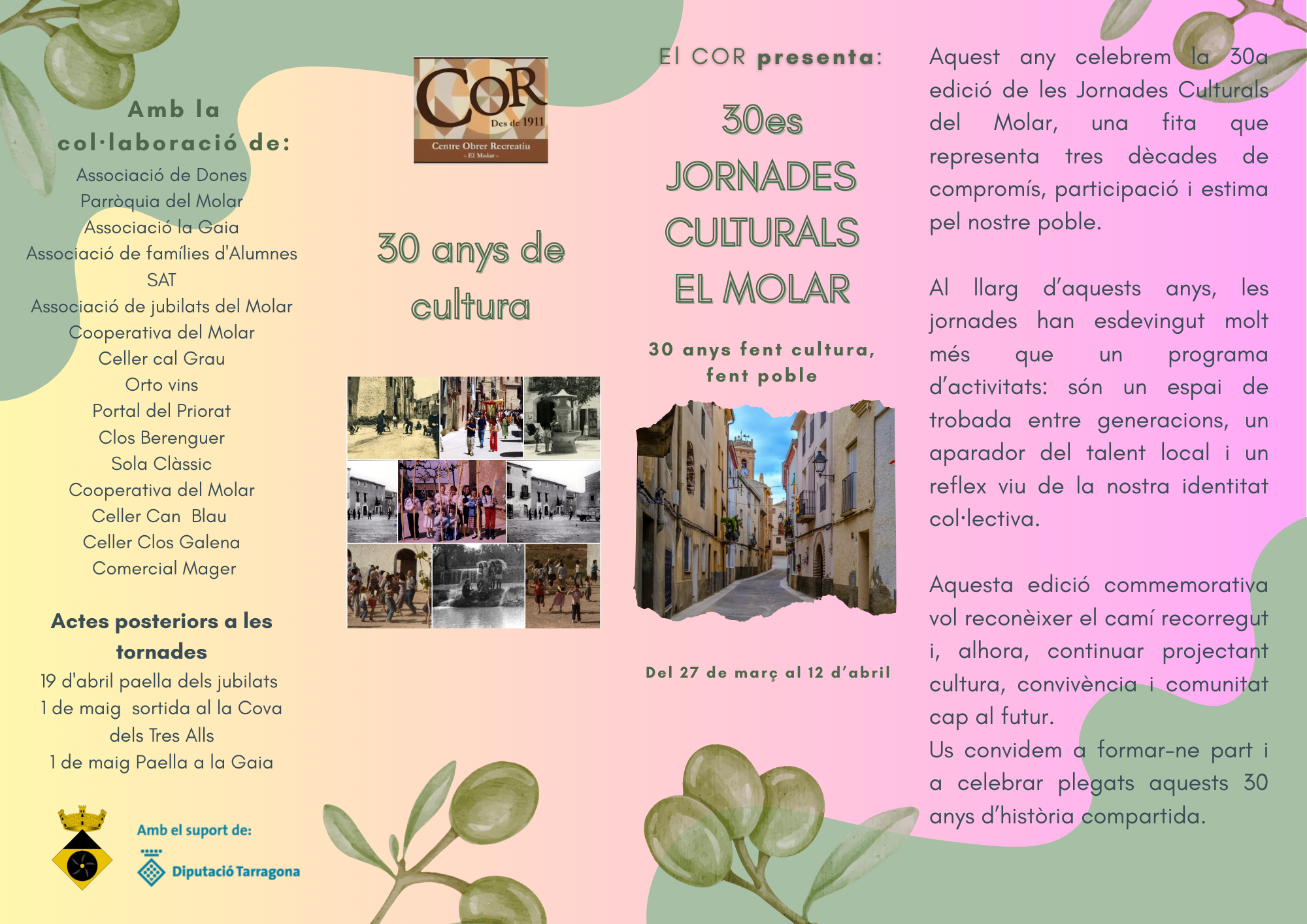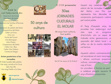 XXX JORNADES CULTURALS - El Molar - 27 de març al 12 d’abril 2026